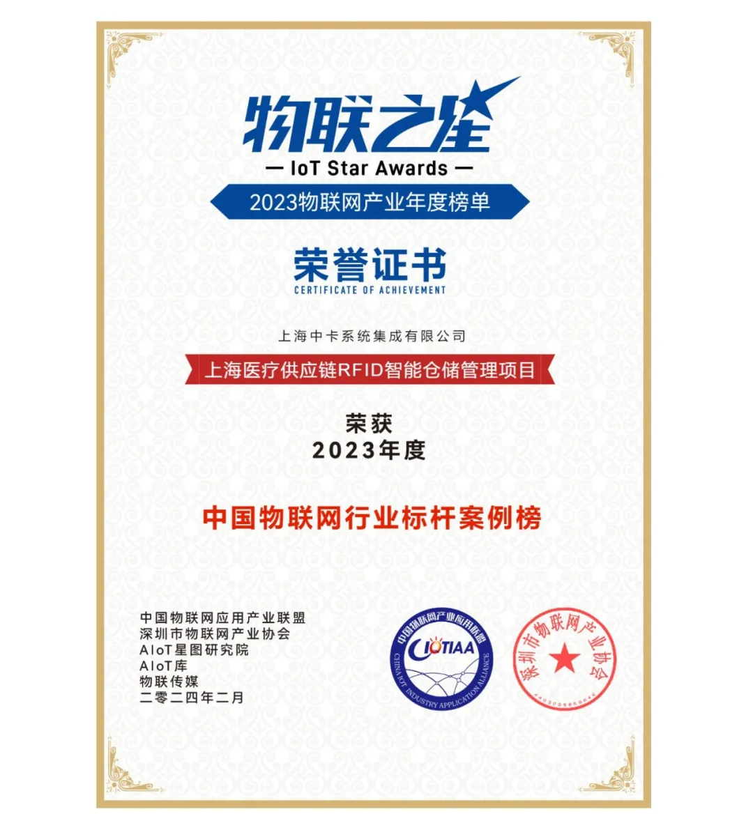 喜报!恭喜中卡系统荣登2023年度中国物联网行业标杆案例榜